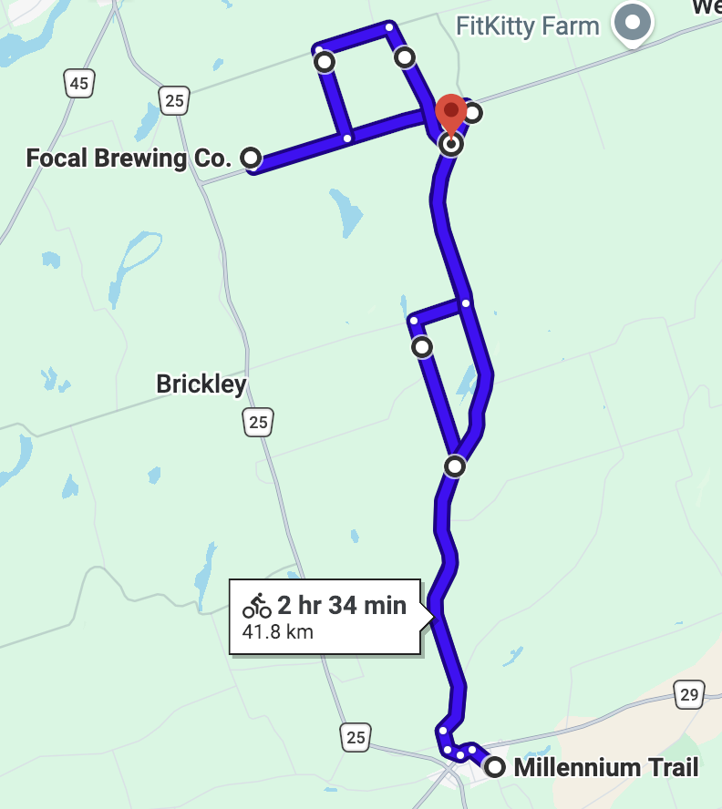 Warkworth to Focal Brewery Sunday, August 30, 2026 11:00 a.m. 1:00 p.m. Millennium Trail Main Street Warkworth Canada (map) Google Calendar ICS Warkworth to Focal Brewery with a short hop on the Trans Canada. Longer ride with some hills but time for a break with a beer. Ride home is easier than ride out. Approx 40k
